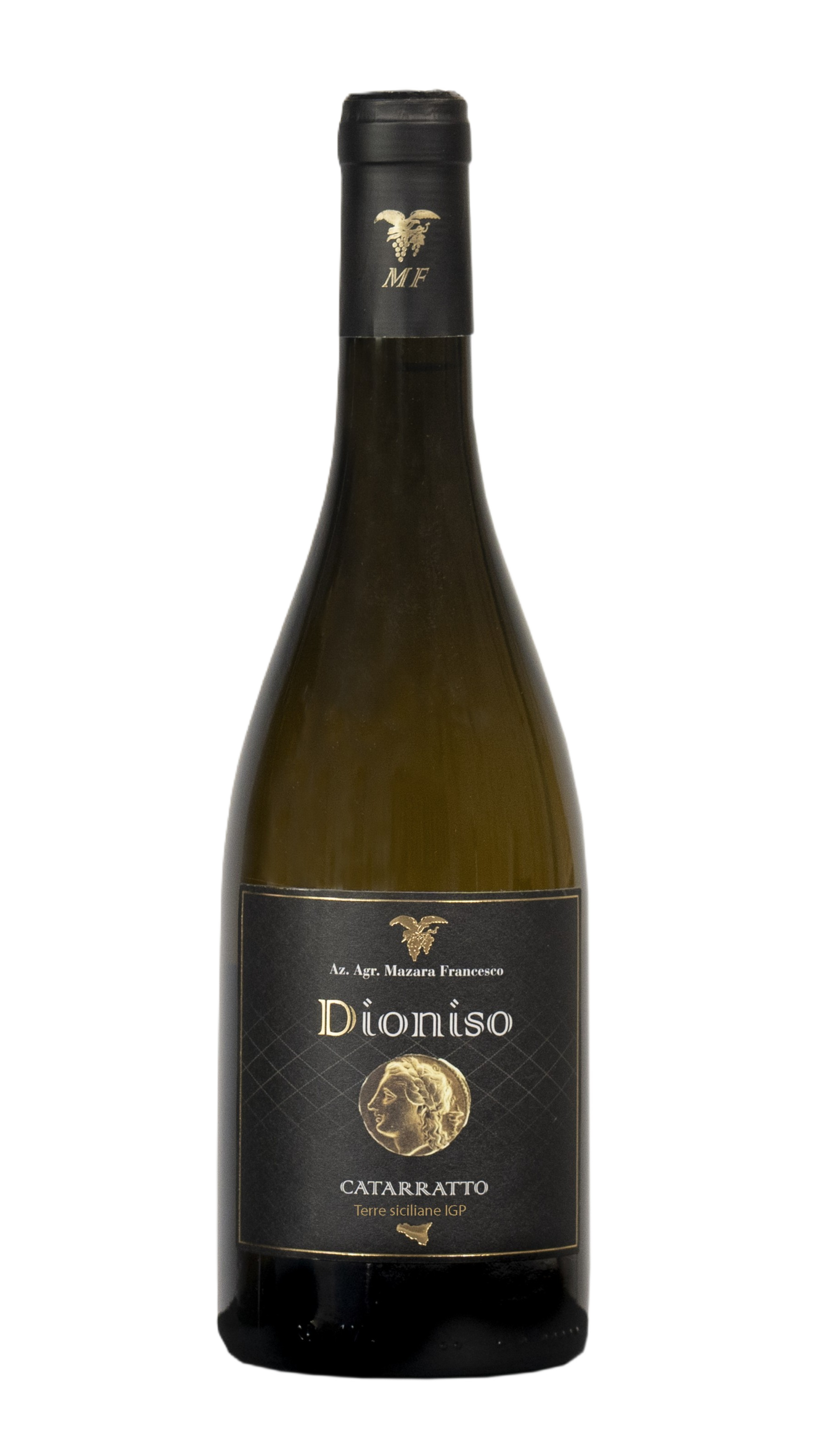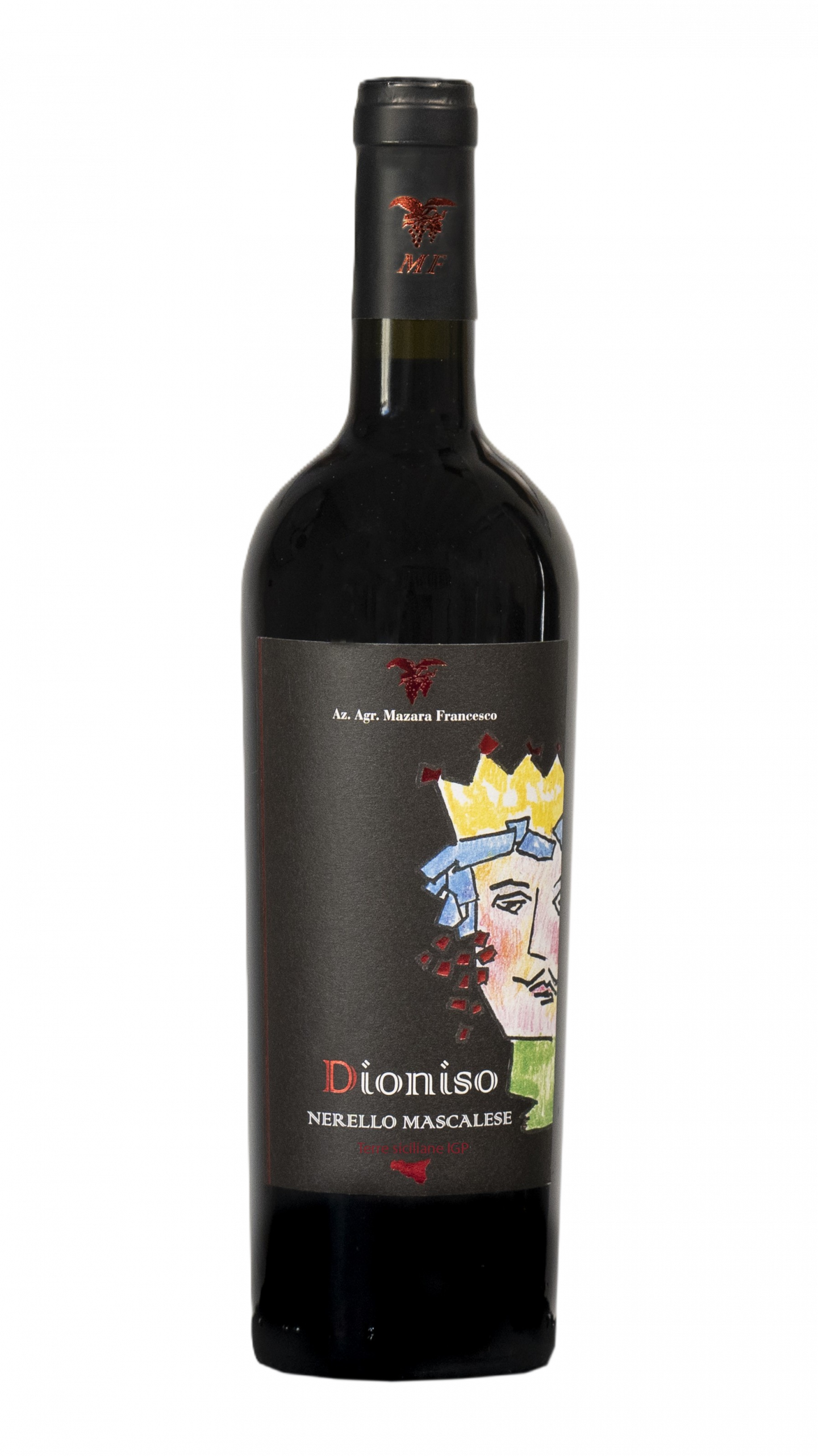 Il falco con i grappoli d’uva tra gli artigli, proveniente da un’antica etichetta della famiglia Mazara è il simbolo dell’Azienda. Il rapace, tutt’oggi presente nel territorio, con il suo elegante volteggiare, sembra quasi voler essere da guardiano e vigile sentinella dei vitigni da cui provengono le uve, come lo è DIONISO con il suo sguardo attento custode della bottiglia.